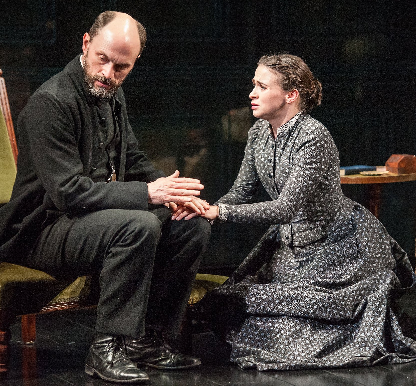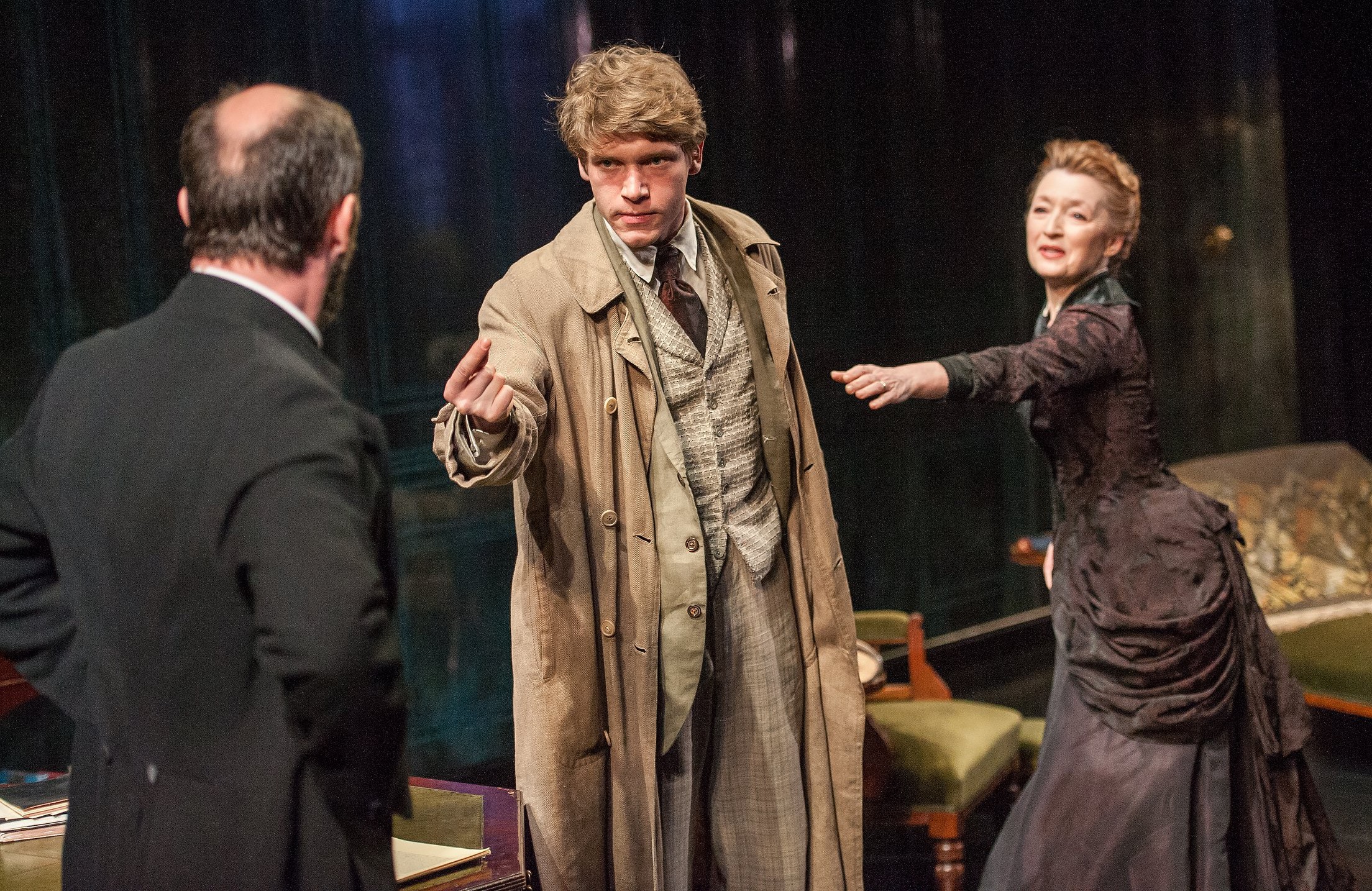 Her chief antagonist is Pastor Manders, a mouthpiece for propriety with whom Helene once had a mutual flirtation. Played with stiff-necked brusqueness by Will Keen, Manders is shocked by some of her free-thinking ideas, but even more by the sordid life she was forced to live with his good friend, the womanizing and abusive Captain Alving, after he rebuffed her advances.