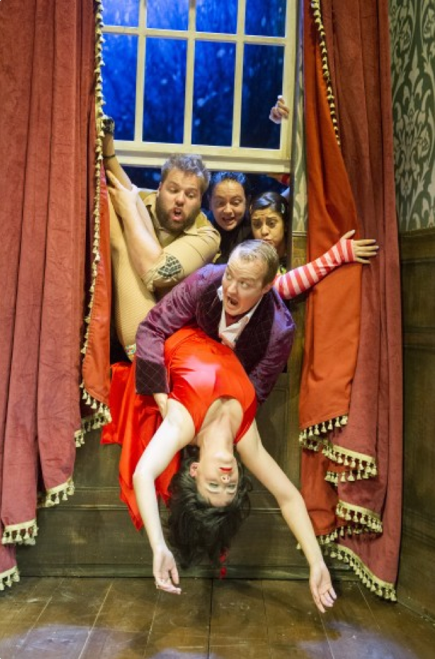 This year’s Olivier winner for best comedy is a daffy trifle with the apt title The Play That Goes Wrong, in which the decidedly amateur (and amateurish) Cormley Polytechnic Drama Society mounts an ill-fated production of a drawing-room mystery called The Murder at Haversham Manor. Dropped lines and dropped props are the order of the day, and the players — who include co-writers Henry Lewis, Jonathan Sayers, and Henry Shields — miss their marks with broad comic precision. It’s a bit like panto for grown-ups.