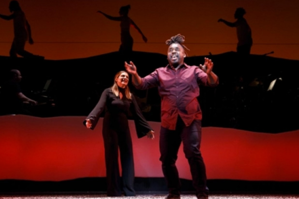 Of the four singers, Mykal Kilgore and Shoshanna Bean get the standout numbers. Kilgore’s Man 1, initially played by Tony winner Billy Porter, skirts the edges of stereotype and cultural appropriation with his songs about overcoming racial and economic disadvantages — but he also gets the most gospel-inflected numbers that showcase Kilgore’s vocal range, gift for “American Idol”-style runs and ability to hold a note for just about ever.