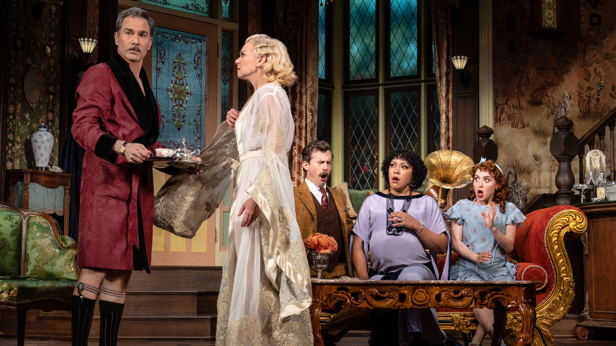The star-filled cast can best be described as game, deserving the tip of a ’20s flapper hat for managing to keep the nonsensical story afloat for as long as they do. A special shout-out to Bundy, Steingold and especially Moffat, a Broadway newbie who leans into the physical comedy in a way that steals attention even when he’s merely sitting down (in a deliberately awkward and exaggerated way).