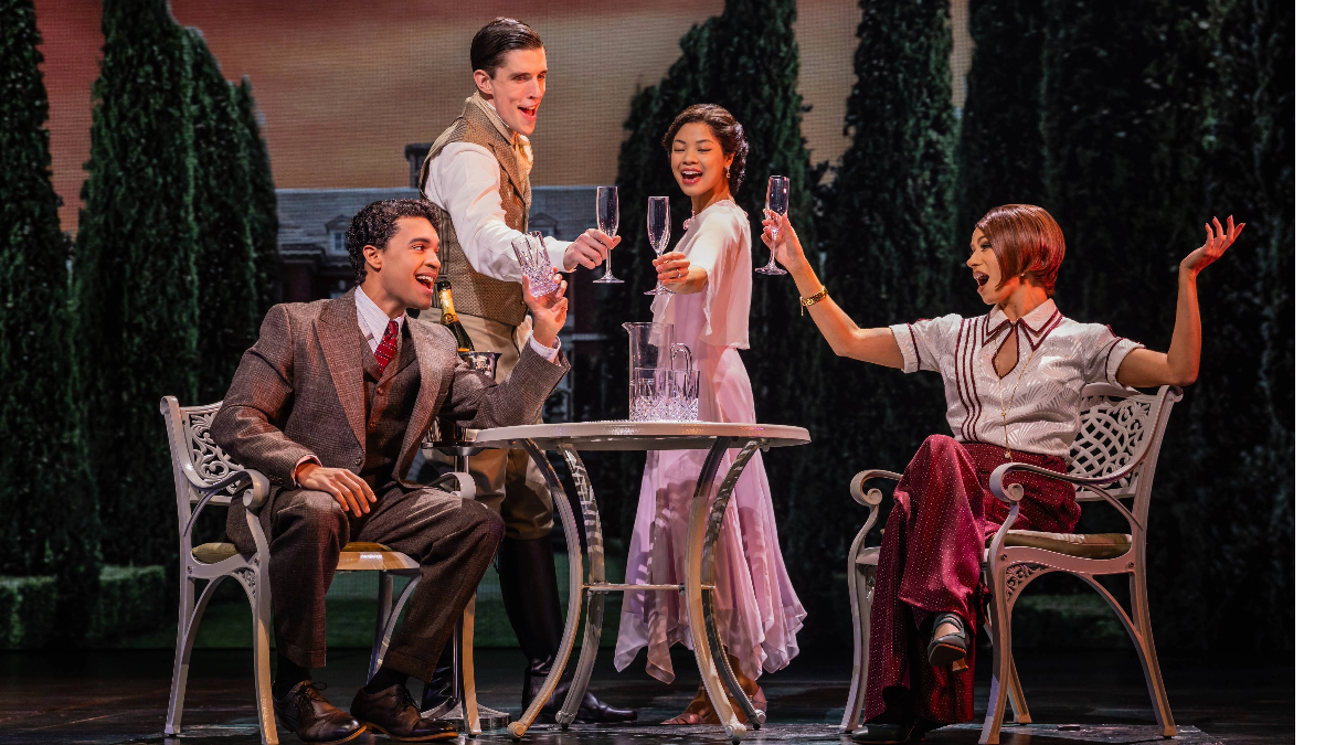 The show looks like a couple million bucks, with a fortune spent on two on-stage automobiles alone, and some energetic group dance numbers (choreographed by Dominique Kelley) that have an appealing showmanship. Director Marc Bruni delivers the kind of high-gloss, new-money production that Gatsby himself might have built for himself on Long Island’s North Shore. But there’s a huge crack in the foundation: Kait Kerrigan’s book, which has turned Fitzgerald’s classic into a mushy melodrama with characters twisted beyond all recognition. Gatsby (Jeremy Jordan), that most enigmatic of American antiheroes, here becomes a lovesick schoolboy who literally bumps into drinks carts trying to maintain his poise around his erstwhile crush, Daisy (Eva Noblezada), who’s stuck with an 11 o’clock ballad describing herself as a “beautiful little fool.”