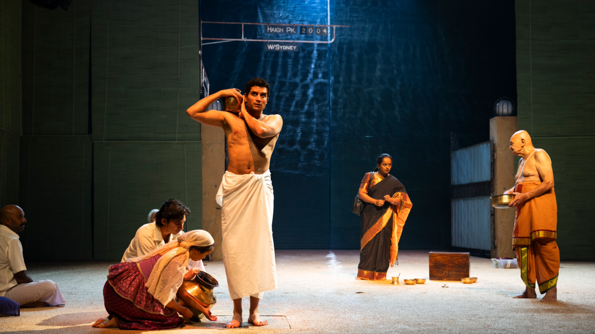 Despite the heaviness of some of the material, which includes the imminent threat of violence as mobs take over the streets and the decades-long imprisonment of a key character, Flack directs with a remarkably light touch. The ensemble not only move set pieces about the stage and translates each other’s lines, but they can also be seen commenting on the action from the periphery, at one point encouraging Radha’s college-student son to make a move on the young woman from an aboriginal community in northern Australia (Abbie-lee Lewis).