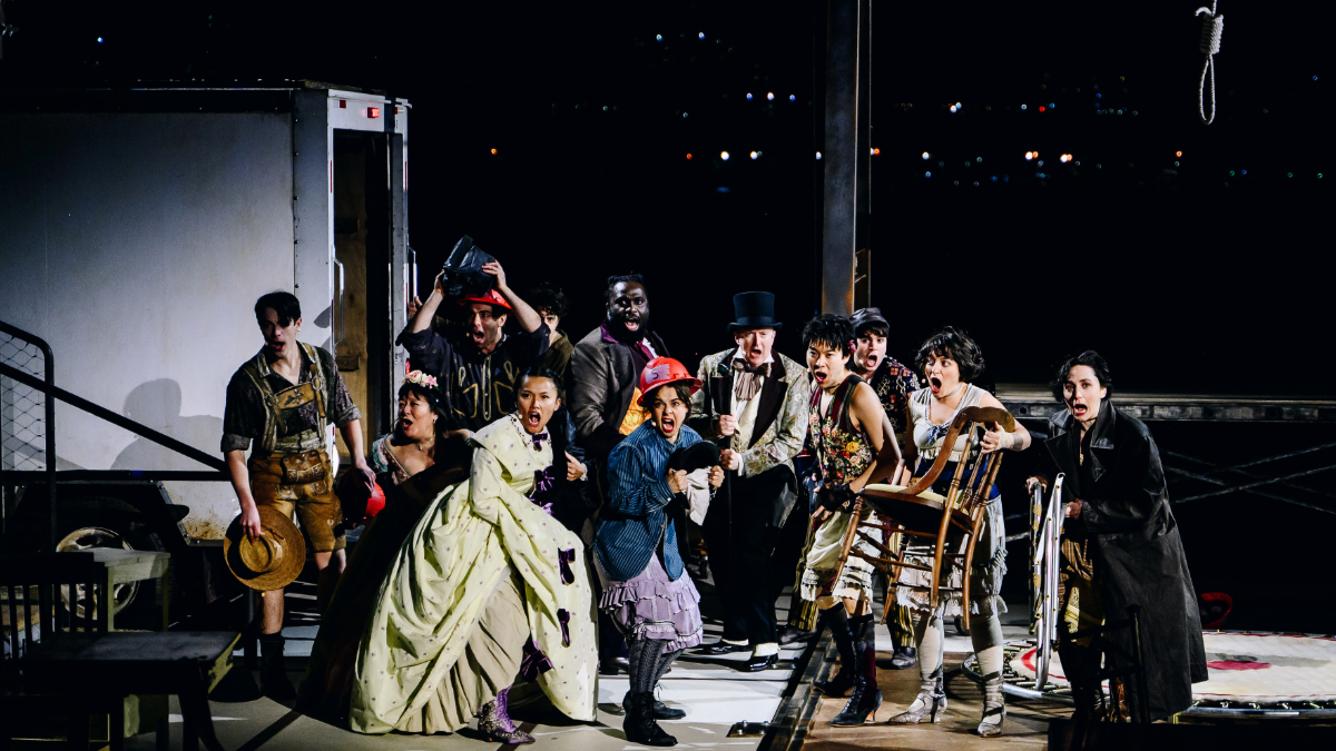There’s a timeless appeal to lower-class strivers, or course, and the show’s opening moments underscore this point: The full ensemble piles out of an onstage semi-trailer with pilfered costumes and props (“Property of the Metropolitan Opera”), and a call to arms for the have-nots. “Only the wealthy can afford Broadway. Or Netflix without ads,” one says, while another adds, “Even if you’re well-off, we invite you to take our side tonight.”