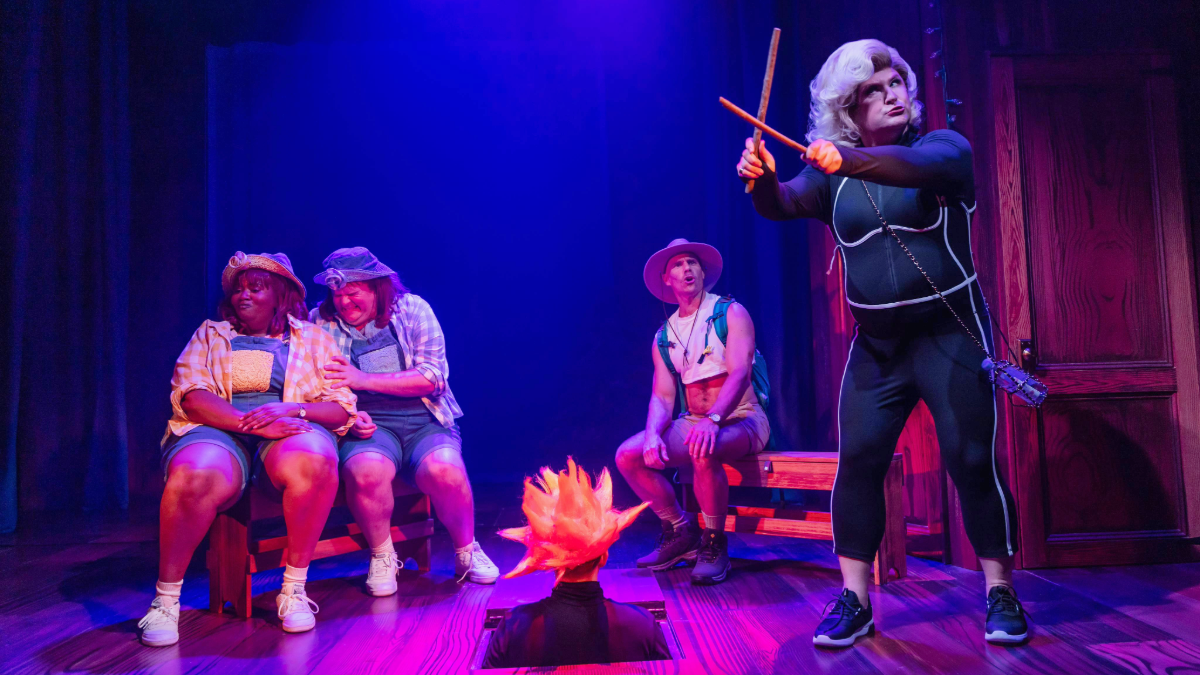 Appropriately enough for a show that celebrates camp, the story begins at a summer camp where our separated-at-infancy twins Annie and Hallie meet for the first time. Rather than relying on a single actress to play the dual roles (as Lindsay Lohan did in her film debut in the 1998 movie, and Hayley Mills before her in the 1961 original), the show instead casts two ginger-wigged actors who are unlikely to induce a double-take: Russell Daniels (Annie) is white, with the zany but sweet demeanor of a young John Candy, and Aneesa Folds (Hallie) is Black, a sassy, take-no-guff woman who’s quick to take personal offense at the supposedly Indian name of her camp (Arapaho) and to shoot down any suggestion of blackface when they switch places.