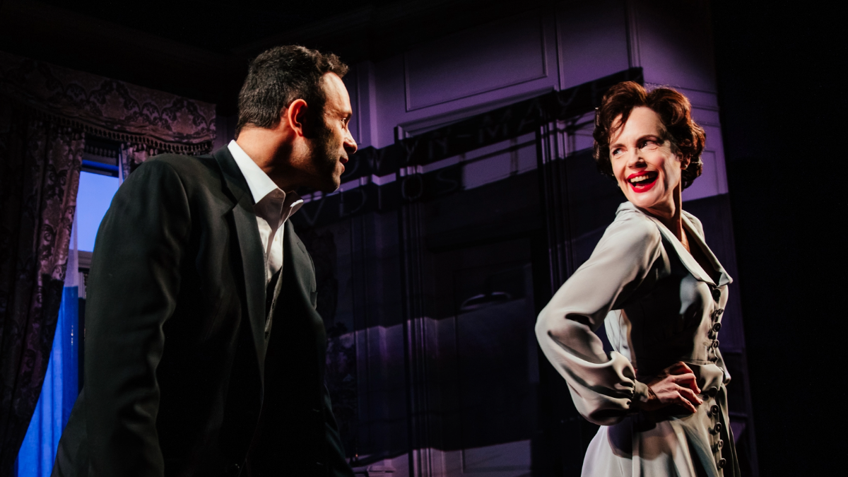 Ganis’ Evans provides the narrative framework for the story: He’s the fourth-wall-breaking would-be novelist who reluctantly takes on Gardner’s ghost-writing assignment and then finds himself caught up in his subject’s spell. The Brooklyn-born actor also plays the major loves of Gardner’s life as the onstage interview sessions morph into staged memories. Director Moritz von Stuelpnagel underscores the change with abrupt shifts in Amith Chandrashaker’s lighting and Alex Basco Koch’s projections on David Meyer’s set, a re-creation of Gardner’s well-appointed London flat.