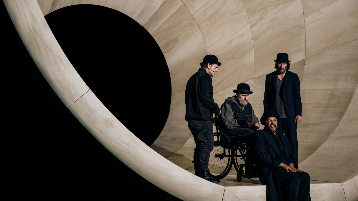 Reeves leans into his notorious deficit of affect, delivering his lines with a world-weariness that’s apt if sometimes bordering on monotonous. As the excitable chatterbox Vladimir, Winter shows a bit more dramatic range in speculating on their characters’ plight stuck in a literal no-man’s-land awaiting the arrival of the elusive Godot, whom they hope will end their days of misery and boredom and nighttime beatings by unseen antagonists.