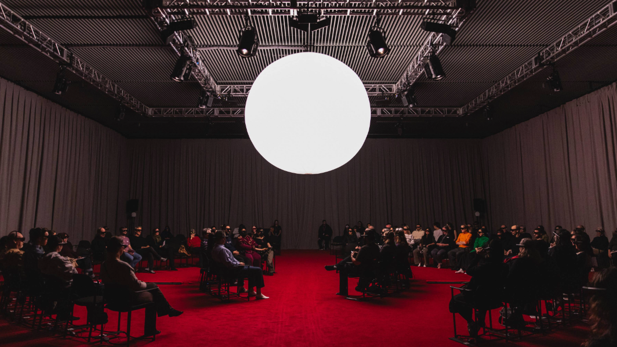 An Ark feels less like a breakthrough work of theater than a promising test case for a new technology. Theatergoers are seated in three rows of chairs arranged in a circular pattern around a giant white orb hanging from the ceiling of a curtained room at The Shed. You then don headsets that fit snugly around your ears and the top of your head (you can’t fit them over eyeglasses, but they can be adjusted to your prescription). At first, you just see four simple wooden chairs in a semicircle through the headset — you need to turn your head to 10 o’clock and 2 o’clock to see the ones on the ends. When the performance begins, the actors appear and settle into their seats. You are still aware of the other audience members, who remain in your vision just behind the cast, but the overall effect is astonishing.