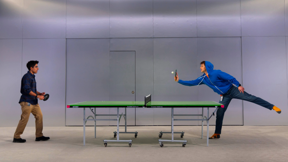But parental pressure to succeed and not-so-latent personal ambition drive him to take a job at the mighty Athena — where he first toils in the low-profile User Experience division under the mentorship of a barely qualified tech bro named Jonah (13 Reasons Why alum Brandon Flynn, perfectly evoking frat-boy entitlement and vulnerability). One sign of how much Maneesh is underutilizing his talents is the amount of time he spends playing ping pong with Jonah in the company break room. (The versatile minimalist set, looking like a white shoebox, is designed by Marsha Ginsberg and lit by Amith Chandrashaker.)